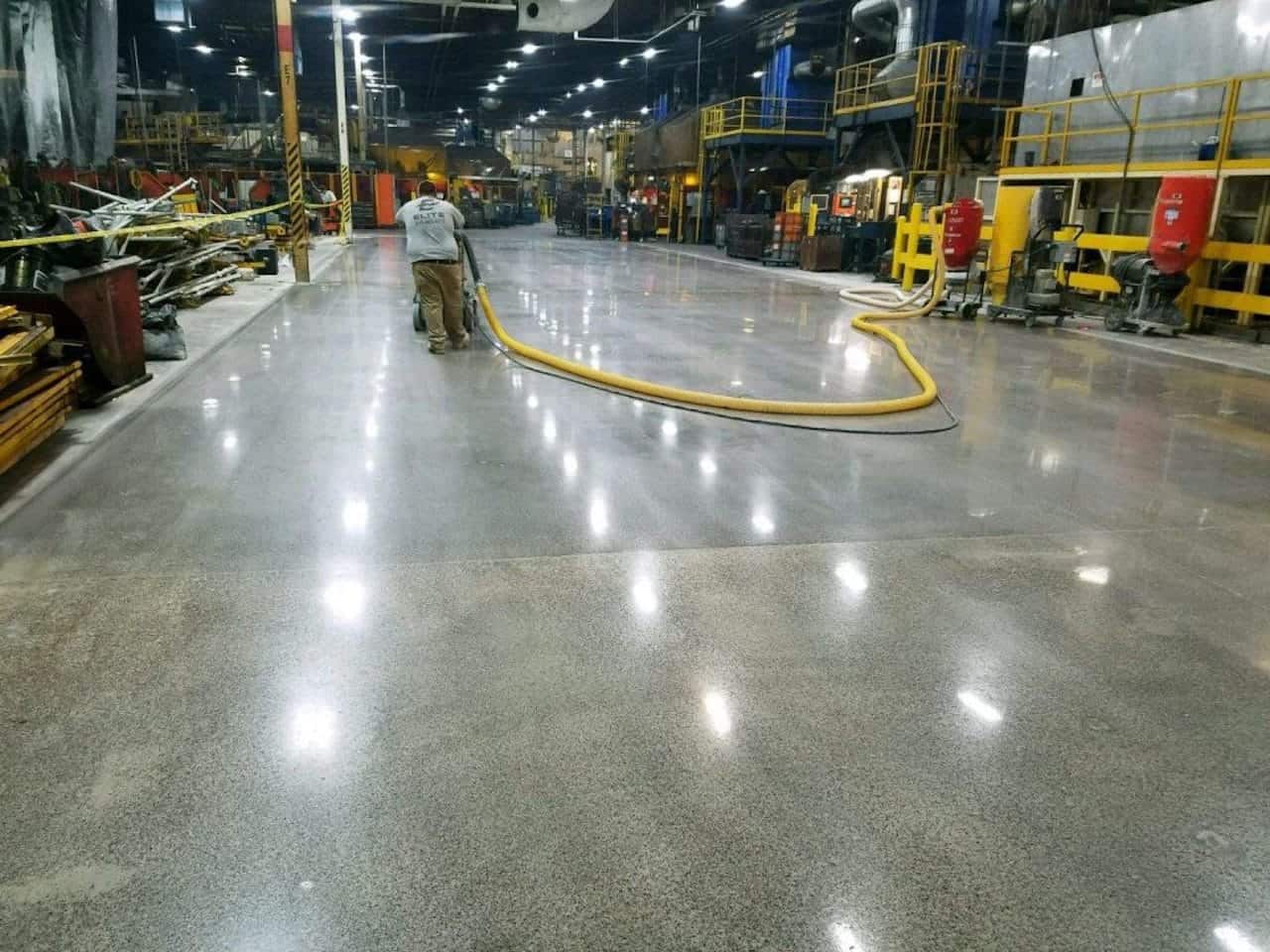 O polimento em concreto usinado é um processo mecânico de lixamento e lapidação da superfície com ferramentas diamantadas, transformando o concreto bruto em um piso liso, denso e brilhante. Essa técnica elimina camadas frágeis, corrige imperfeições e aumenta a resistência à abrasão e impactos, tornando o piso mais fácil de limpar e esteticamente moderno.